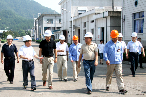 8月16日上午,建德市領導董悅、徐志生、章舜年、吳鐵民、鄭洪彪、郭昌友等在公司總裁林加善、黨委副書記潘秋友的陪同下來到化工二廠,深入生產車間,對崗位上的一線員工進行了高溫慰問。
