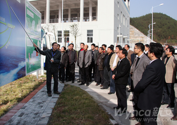 東陽黨政代表團在任不凡副總經理的陪同下參觀了新安邁圖和馬目環保應急池。