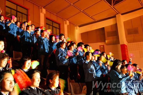 瀏覽量:2575 4月25日晚,由80名新安化工員工組成的合唱團,身穿新安藍工作服,在體育場內(nèi)參加建德市萬名職工唱紅歌的活動,放聲高唱《東方紅》、《山丹丹花開紅艷艷》和《歌唱祖國》等紅色歌曲,以此來慶祝“五一”勞動節(jié)和即將到來的建黨90周年大慶。在活動中,公司員工何亮成為晚會主持人之一,與其他五名主持人一起為全市勞動模范和職工代表主持了一場精彩的文藝演出。