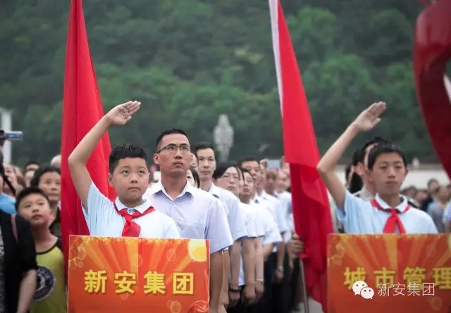 10月1日,新安集團50名員工代表與建德市近千名干部、群眾、學生等匯聚新安江廣場,觀看國慶升國旗和成人宣誓儀式,慶祝中華人民共和國成立67周年。